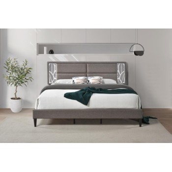 Sommier 26 lattes plat en bois, cadre en métal avec 16 pieds en métal réglable en hauteur