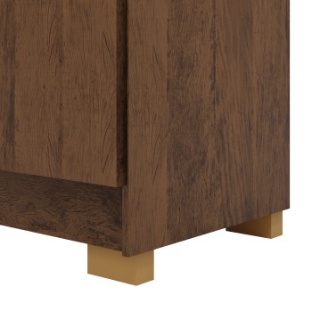 Structure en panneaux de particules, recouvert de papier peint bicolore effet bois et blanc.
