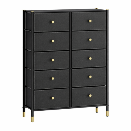 Structure avec un cadre en métal robuste à des tiroirs en tissu.