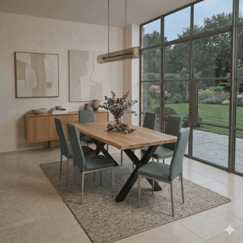 Haut fibre de bois recouvert de papier décor, et piètement en métal