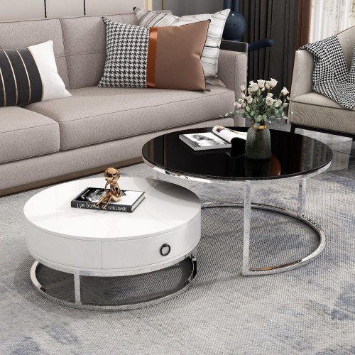 - La table blanche est fabriquée en fibre de bois de haute qualité avec une finition laquée brillante, montée sur une structure en métal robuste.