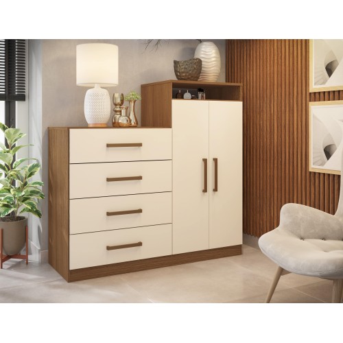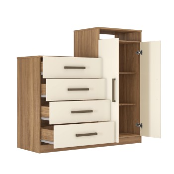 Structure en panneaux de particules, recouvert de papier peint bicolore : effet bois et blanc.