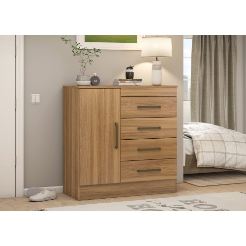 Structure en panneaux de particules, recouvert de papier peint effet bois.