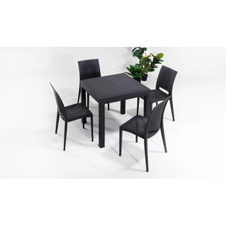 Table 80x80 cm + 4 chaises de jardin °004MODA_RATAN
