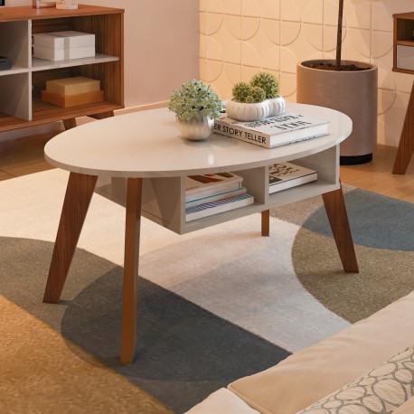La structure de la table basse est réalisée en MDF peint, offrant une finition lisse et uniforme tout en assurant une bonne solidité au quotidien.